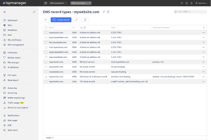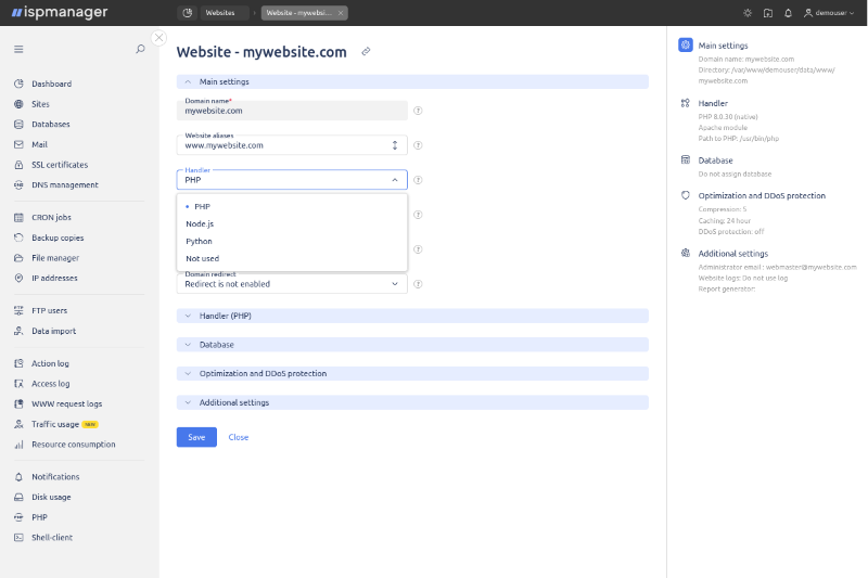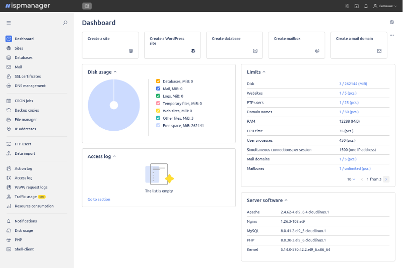 ISPManager — это русскоязычная панель управления с интуитивным интерфейсом для размещения сайтов, управления почтой, базами данных и резервными копиями.